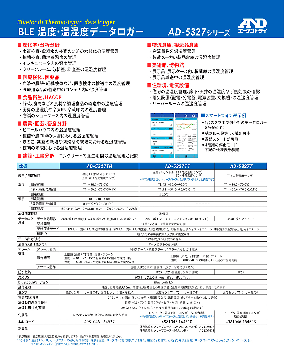 AND(A&D)溫濕度數(shù)據(jù)記錄器AD-5327T