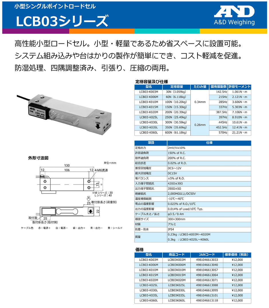 AND(A&D)稱(chēng)重傳感器LCB03-K003M