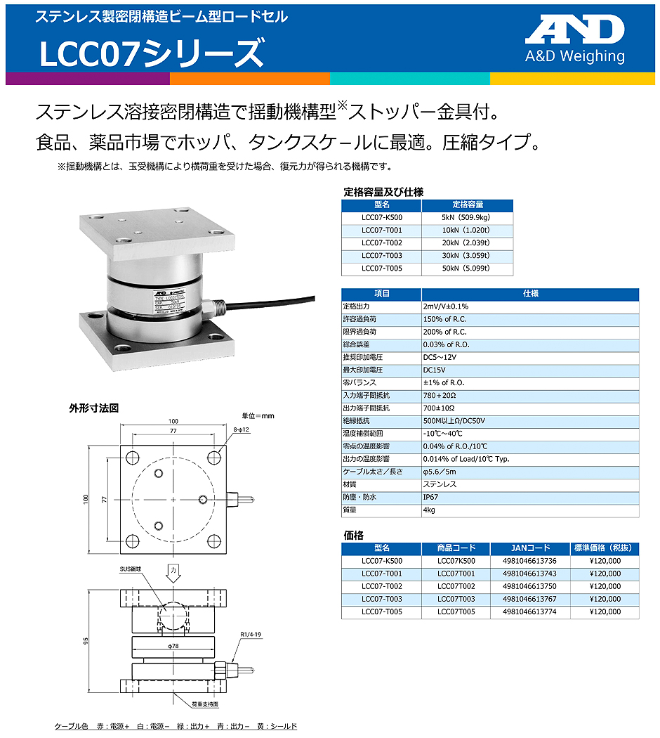 AND(A&D)負(fù)載傳感器LCC07-T002