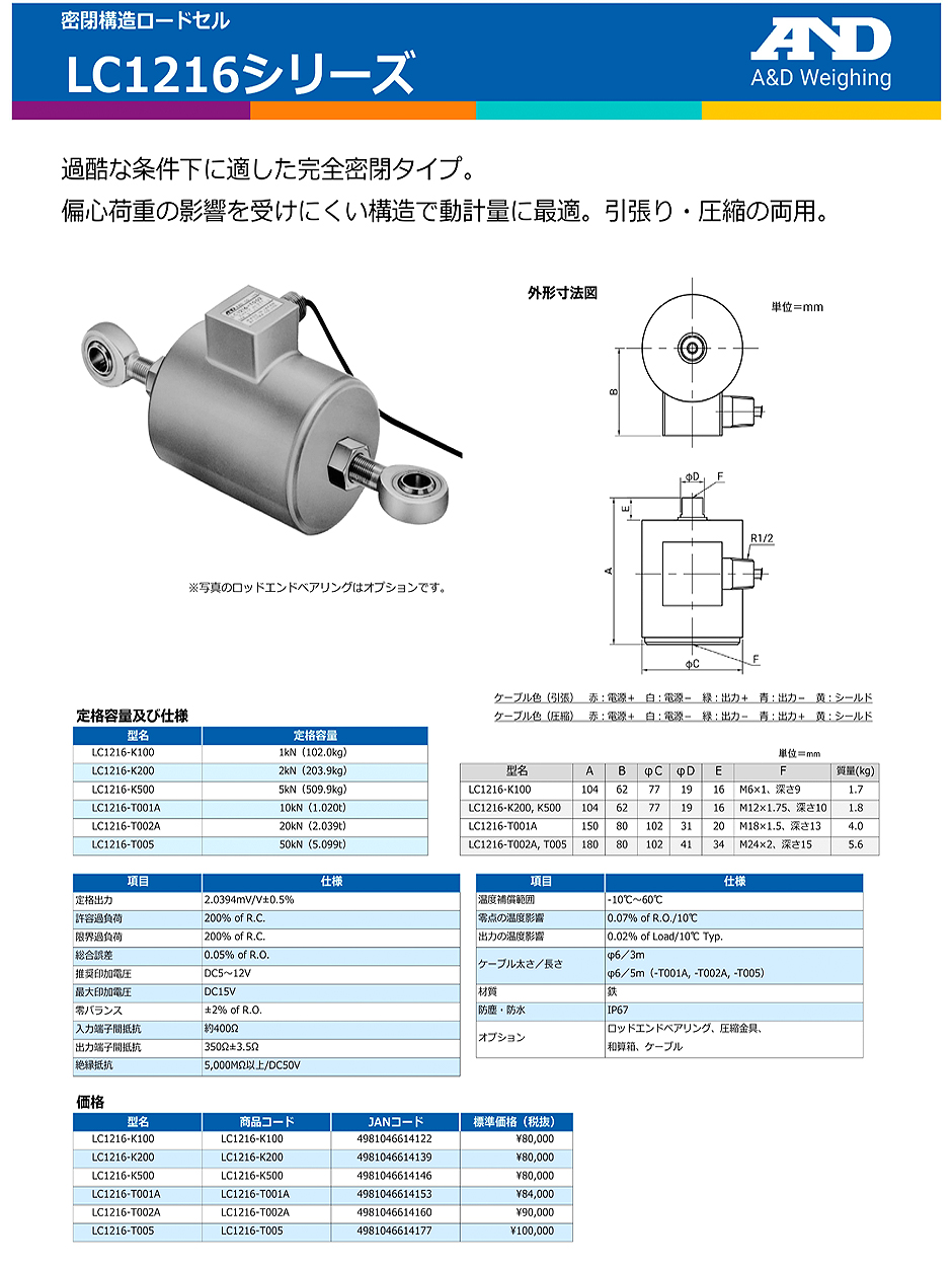 AND(A&D)負載傳感器LC1216-K100
