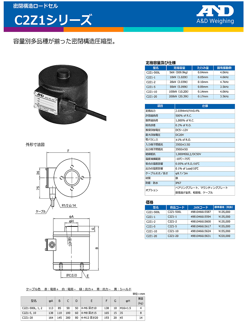 AND(A&D)負載傳感器C2Z1-10