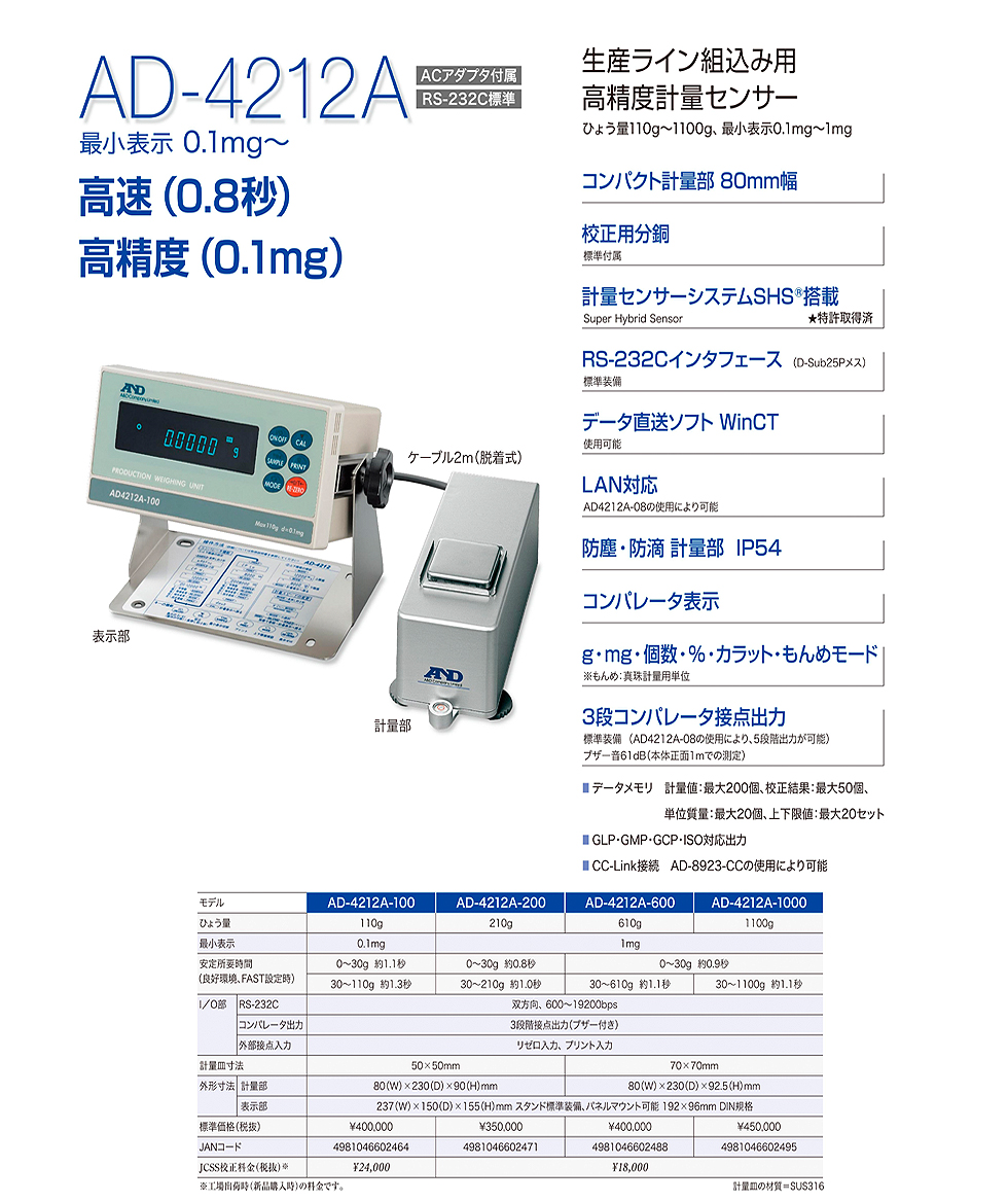 AND(A&D)高精度計量傳感器AD-4212A-1000