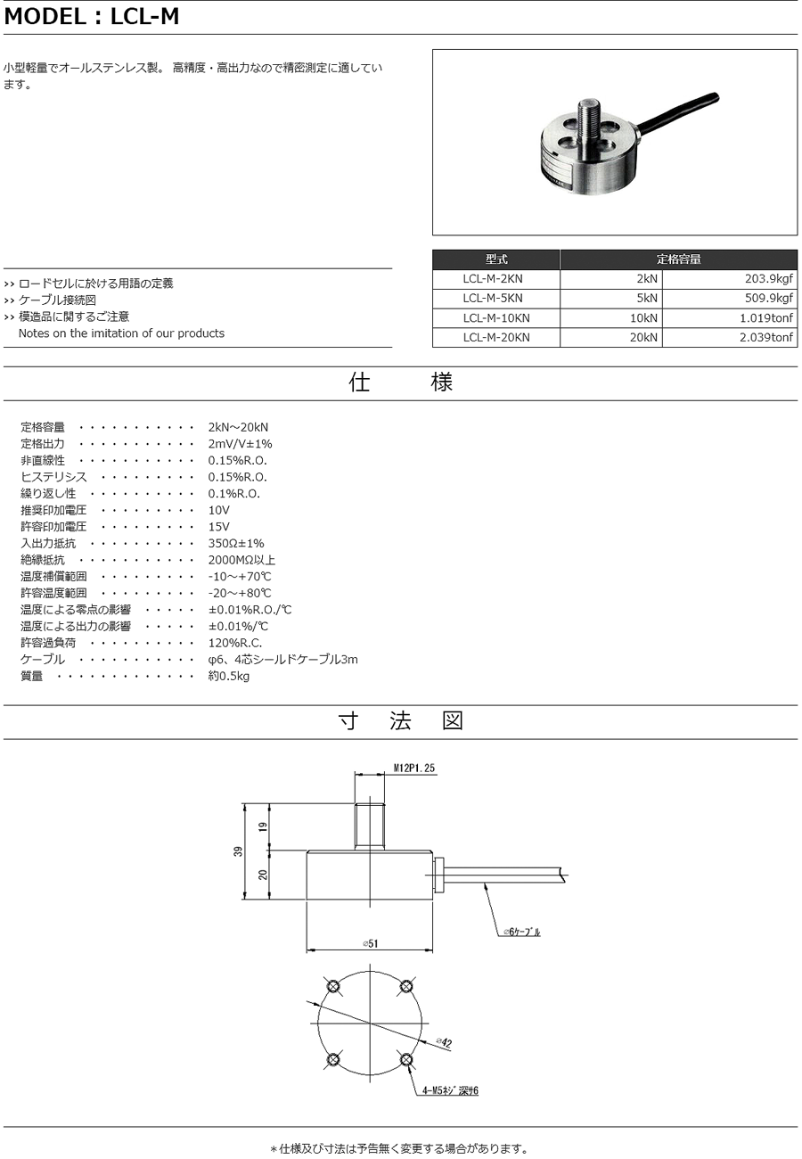特殊測器荷重傳感器LCL-M-2KN