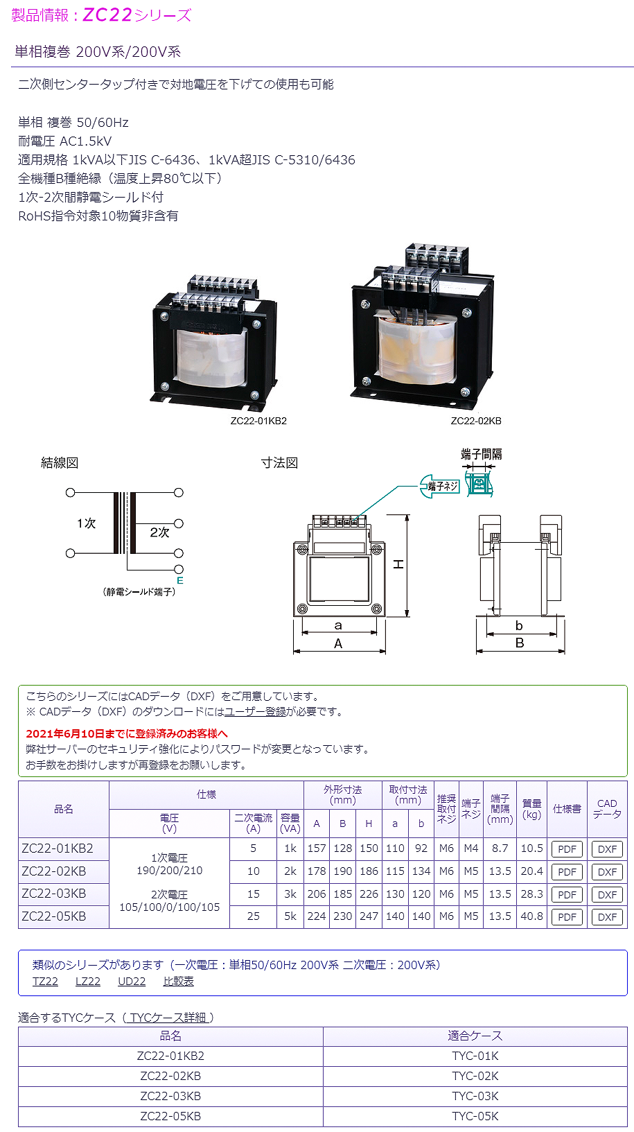 豐澄單相200V/200V變壓器ZC22-01KB2