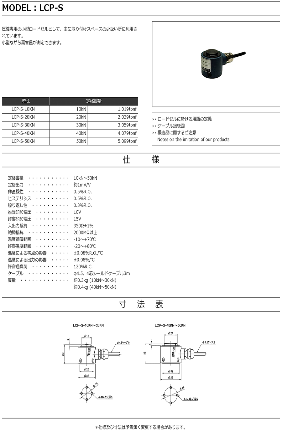 特殊測(cè)器荷重傳感器LCP-S-30KN