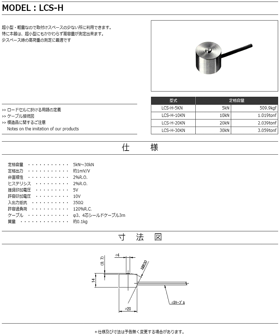特殊測器荷重傳感器LCS-H-5KN