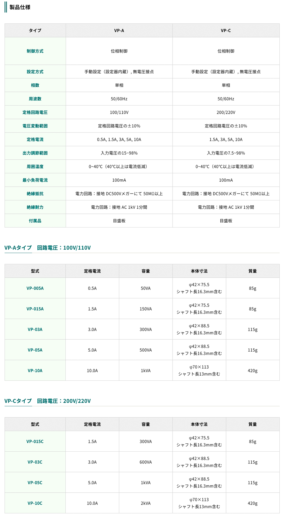東京理工舍電力調(diào)整器VP-015C