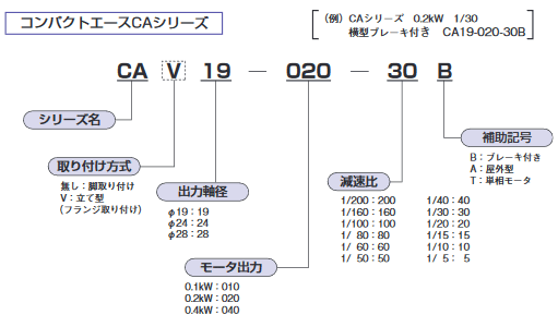 CA24-040-20B 橫型 0.4 三相200/220V 1/20 24 ブレーキ付